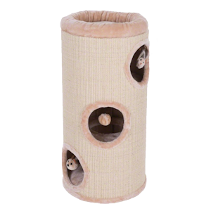 A savoir que la corde de l'arbre à chat résiste un certain temps et il faudra penser à la changer au bout de quelques mois (voire années si vous n'avez qu'un chat) - les tours à griffer dont ils raffolent (nous aussi) ont l'avantage de donner une grande surface à griffer et des niches avec liens entre elles pour se cacher...